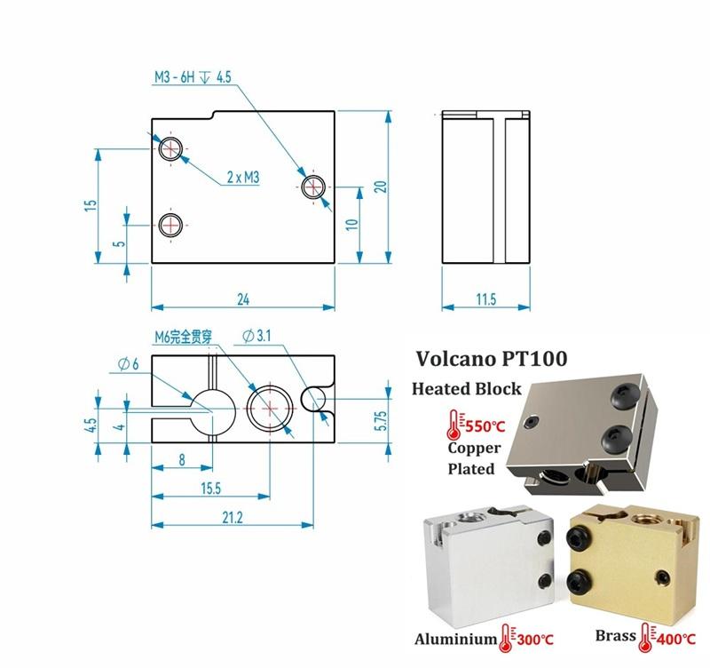 برچسب ها: محفظه آلمینیومی هیتر پرینتر سه بعدی, قطعات مکانیکی, محفظه برنجی ولکانو Volcano مناسب ترمیستور میله ای PT100