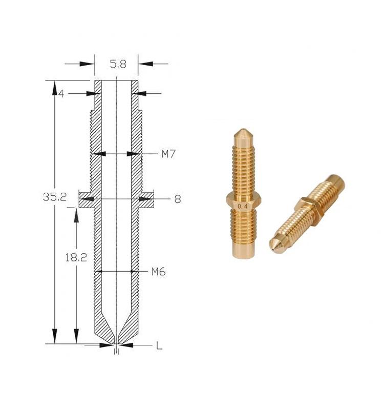 نازل و پیچ سوراخ دار یک تیکه قطر 0.2mm برای اکسترودر V6